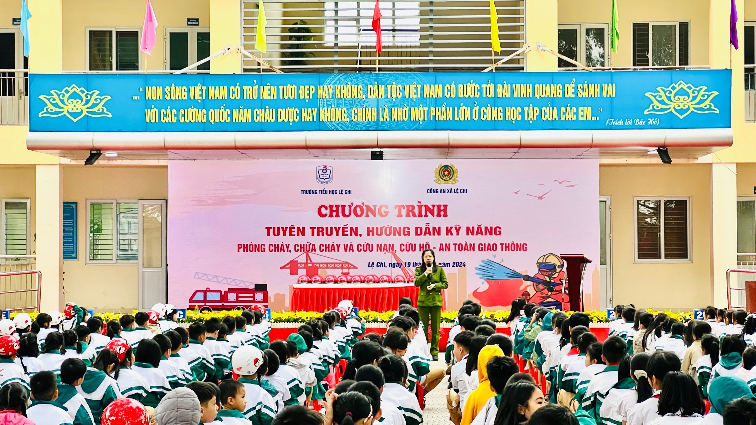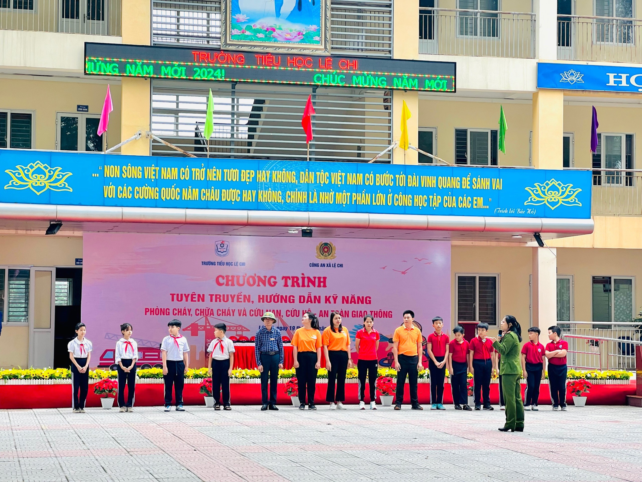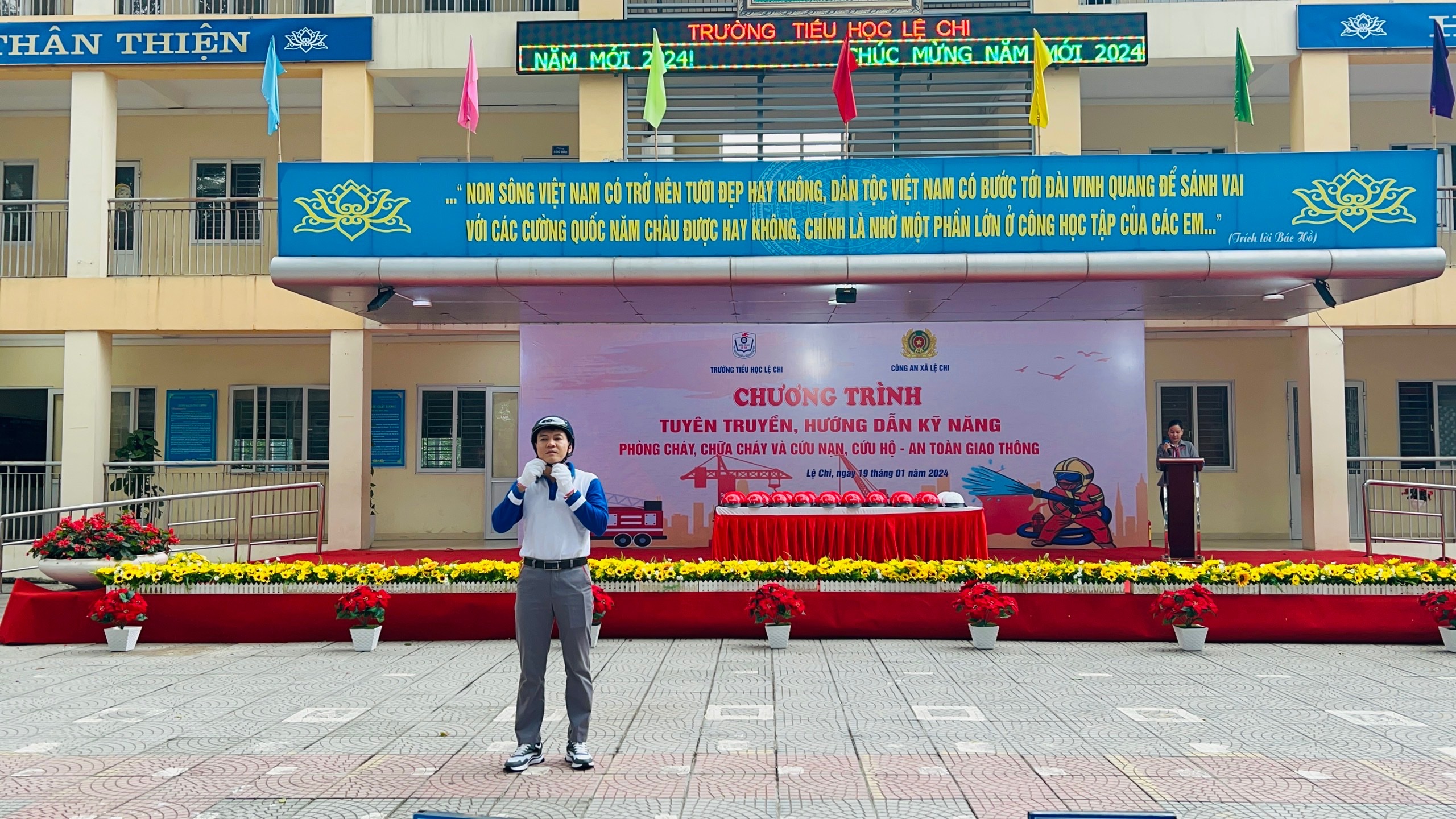 Sáng ngày 19/1/2024, trường Tiểu học Lệ Chi tổ chức Chương trình Tuyên truyền, hướng dẫn kỹ năng PCCC và cứu hộ, cứu nạn-An toàn giao thông cho CB, GV, NV và học sinh toàn trường. Chương trình đã nhận được sự hưởng ứng tham gia nhiệt tình của các em học sinh và cán bộ giáo viên nhà trường. Nhà trường xin gửi lời cảm ơn chân thành và sâu sắc nhất tới các đồng chí Công an huyện Gia Lâm, công an xã Lệ Chi và công ty Honda Việt Nam đã phối hợp để buổi tuyên truyền thành công tốt đẹp và đầy ý nghĩa.